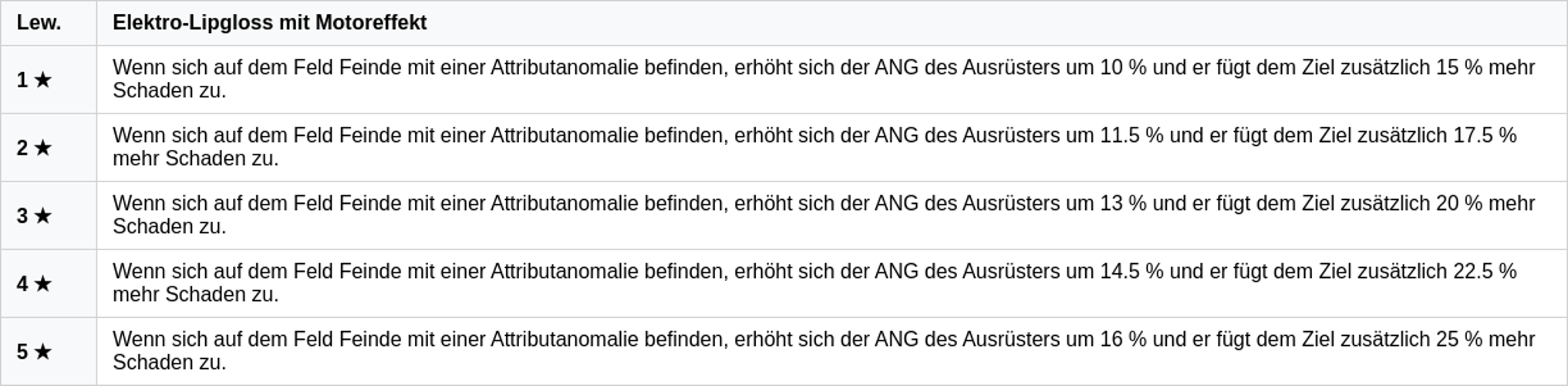 Electro Lipgloss ist eine W‑Engine der Rangstufe A, die speziell auf Anomalieschaden ausgerichtet ist.\n